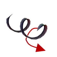 In this situation, a spinor is a sort of polarized vector. In the adjacent diagram, a spinor can be represented as a vector whose head is a flag lying on one side of a Möbius strip, pointing inward. Initially, suppose that the flag is on top of the strip as shown. As the coffee cup is rotated it carries the spinor, and its flag, along the strip. If the cup is rotated through 360°, the spinor returns to the initial position, but the flag is now underneath the strip, pointing outward. It takes another 360° rotation in order to return the flag to its original orientation.