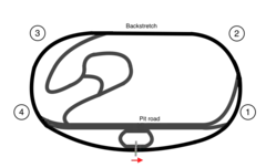 D-shaped ovalA variation of tri-oval is the "D-shaped oval". Similar to a tri-oval, a D-shaped oval has a straight backstretch, but a long, sweeping frontstretch, giving the circuit a layout resembling the letter D. The shape originated with a pair of sister tracks built in the 1960s: Michigan International Speedway and Texas World Speedway. Initially, this design has been used only for superspeedways. But there are now some short tracks with this shape, too. For example, the Richmond Raceway was rebuilt in 1986 from a 0.542 mi stadium oval to an 0.750 mi D-shaped oval. The most famous short track, which was explicitly designed as a D-oval from the scratch, was the Iowa Speedway, which opened in 2006.-