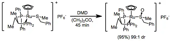 Alternatively, an asymmetric environment may be established through the use of chiral metal complexes. For instance, coordination of sulfides to chiral, non-racemic transition-metal complexes facilitates enantioselective sulfoxidation with dioxiranes. Bovine serum albumin may also be used to establish a chiral environment for sulfoxidation.[9]