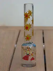 The form of the glass used to drink pálinka affects the drinking experience. The ideal glass is wide at the bottom and narrow at the rim, that is, tulip-shaped. The relatively narrow neck of the glass concentrates the "nose" released from the larger surface at the bottom of the glass, magnifying the smell of drink.