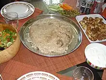 Palestine's history of rule by many different empires is reflected in Palestinian cuisine, which has benefited from various cultural contributions and exchanges. Generally speaking, modern Palestinian dishes have been influenced by the rule of three major Islamic groups: the Arabs, the Persian-influenced Arabs, and the Turks.[34] The original Bedouin Arabs in Syria and Palestine had simple culinary traditions primarily based on the use of rice, lamb and yogurt, as well as dates.[35]