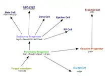 - ↑ Jensen, J (2004). "Gene regulatory factors in pancreatic development". Developmental Dynamics. 229 (1): 176–200. doi:10.1002/dvdy.10460. PMID 14699589. S2CID 13470168.