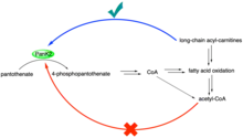 - ↑ Leonardi, Roberta; Rock, Charles O.; Jackowski, Suzanne; Zhang, Yong-Mei (2007-01-30). "Activation of human mitochondrial pantothenate kinase 2 by palmitoylcarnitine". Proceedings of the National Academy of Sciences. 104 (5): 1494–1499. doi:10.1073/pnas.0607621104. ISSN 0027-8424. PMC 1785270. PMID 17242360.