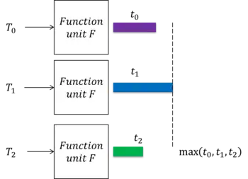 However, if we duplicate the function unit to another two copies (), the aggregate time is reduced to , which is smaller than in a sequential order.