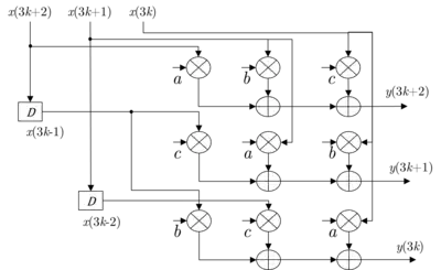 - ↑ K. K. Parhi, VLSI Digital Signal Processing Systems: Design and Implementation, John Wiley, 1999