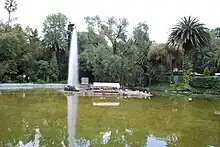 The Parque México (English: lit. "Mexico Park"), officially Parque San Martín,[2] is a large urban park located in Colonia Hipódromo in the Condesa area of Mexico City. It is recognized by its Art Deco architecture and decor as well as being one of the larger green areas in the city.[1] In 1927, when the surrounding neighborhood of Colonia Hipódromo was being built, the park was developed on the former site of the horse race track of the Jockey Club de México. Today, Parque México is not only the center of Colonia Hipódromo, it is also the cultural center of the entire La Condesa section of the city.