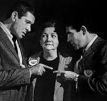 Todd was eventually replaced by the bubbly Pert Kelton for one short, Pan Handlers (1936), but Kelton was quickly replaced by Lyda Roberti, a Polish-born comedienne with a thick foreign accent. Together, they starred in the cute Hal Roach comedy Nobody's Baby (1937) just before Roberti's untimely death. According to Kelly, Roberti died of heart failure in 1938 while bending over to tie a shoelace.[13] It was incidents like these that further perpetuated Kelly's reputation as a jinx in Hollywood. And though some considered her bad luck, her performances were never hampered by this. "You see, something, darned if I know what it is, has happened to me since I came to this crazy town. Everyone I loved, turned to, needed, has gone, just like Thelma. It was Jean Malin, that swell New York actor and impersonator, first. I'd been a friend of Jean and his wife for years in New York. Then I went down to the Ship Café that night of Jean's disappearance. I glanced up at the flashing sign over the door that said, ‘Jean Malin’s last night,’ and as clearly as I'm hearing you, a voice said, ‘Be careful, it is his last night.’ He backed the car into the ocean off the end of the pier just one hour later. We were all submerged in the water. Adrenalin worked with me. It didn't with Jean."[14]