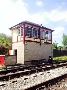 - Matlock Riverside: an original British Rail cabin, formerly located at Luffenham junction. The restored cabin is mounted on a non prototypical stone-block base with an internal staircase to protect the box from vandalism, required due to its isolated location. The 19-lever frame was recovered from Glendon North Junction near Kettering. Mechanical interlocking allows the signals exiting and entering the loop via the Darley Dale end to be cleared in opposing directions when the cabin is switched out via the King locking lever.