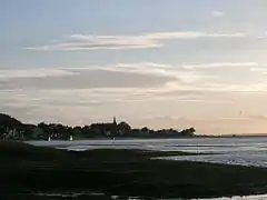 Up until the end of the 19th century Penclawdd was a thriving sea port. The Penclawdd canal connected to the Burry River at Aberkeddy.[3] The village was renowned for coal mining and its extensive tinplate, copper and brass works, operated by the Cheadle Copper Company.[3] There was a time when Penclawdd had a forge, twenty grocers, three butchers, three drapers, four fish and chip shops, eleven pubs, a cinema, the still remaining three chapels and a church and a busy railway station. The original railway platform still remains today. Also, built in 1807, a now derelict Hermon Chapel was used to help ships navigate the estuary.
