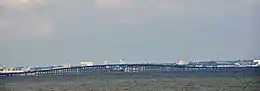 FDOT announced in January 2010, near the end of the bridge's 50-year design life, that the bridge was structurally deficient and would have to be replaced within six years.[6] As of 2011, a study is underway to determine the "feasibility, location, and conceptual design" of a replacement bridge.[7] As of February 2013, plans have begun to replace the bridge with construction beginning within two years, at a cost of $595.6 million, on a course slightly to the west of the existing bridge. The new bridge, like the previous one, will not charge a toll.[8] As of February 2020, construction of the new westbound bridge was completed with only the pedestrian portion to be completed with the old bridge being dismantled to make way for the parallel bridge to begin construction.