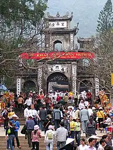 The Hương Temple (Vietnamese: Chùa Hương, Chữ Hán: 香寺) is a vast complex of Buddhist temples and shrines built into the limestone Hương Tích mountains. It is the site of a religious festival which draws large numbers of pilgrims from across Vietnam.[1] The centre of the Hương Temple lies in Hương Sơn Commune, Mỹ Đức District, former Hà Tây Province (now Hanoi). The centre of this complex is the Hương Temple, also known as Chùa Trong (Inner Temple), located in Hương Tích Cave.[2]