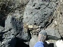 In Utah, there are natural oil seeps at Rozel Point on the Great Salt Lake.[40] The oil seeps at Rozel Point can be seen when the lake level drops below an elevation of approximately 4,198 feet (1,280 m); if the lake level is higher, the seeps are underwater. The seeps can be found by going to the Golden Spike historical site, and from there, following signs for the Spiral Jetty. Both fresh tar seeps and re-worked tar (tar caught by the waves and thrown up on the rocks) are visible at the site.