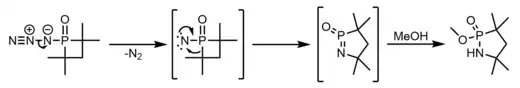 Nitrogen atom insertion proceeds from photolysis of an azidophosphetane oxide, presumably from a Curtius type rearrangement from the generated nitrene. Though this is the proposed mechanism, there are clear doubts about the N=P=O intermediate.[32][33]