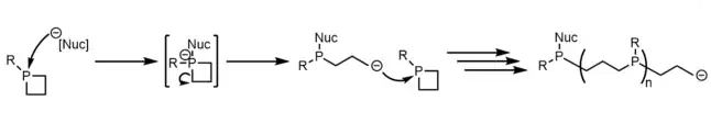 Phosphetane ring opening reactions have been of synthetic interest in the past as a potential method for the creation of polypropylphosphine polymers and materials, but despite ring opening reactions occurring, the polymerization of such material has only been sparsely observed in very concentrated solutions.[8][24]