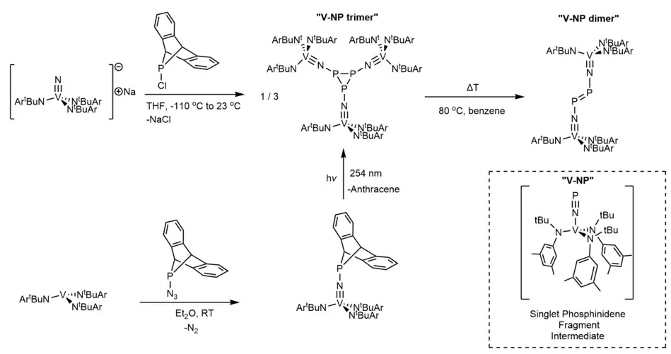4. 1 2 3 4 5 6 Courtemanche, Marc-André; Transue, Wesley J.; Cummins, Christopher C. (2016-12-21). "Phosphinidene Reactivity of a Transient Vanadium P≡N Complex". Journal of the American Chemical Society. 138 (50): 16220–16223. doi:10.1021/jacs.6b10545. ISSN 0002-7863. PMID 27958729.