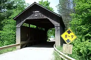 The Pine Brook Covered Bridge, also called the Wilder Covered Bridge,[2] is a wooden covered bridge that crosses Pine Brook in Waitsfield, Vermont on North Road. Built in 1872, it is one two surviving 19th-century covered bridges in the town. It was listed on the National Register of Historic Places in 1974.[1]