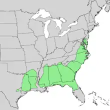 Natural range of loblolly pine