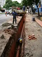 Pipe installation on a street in Belo Horizonte, Brazil