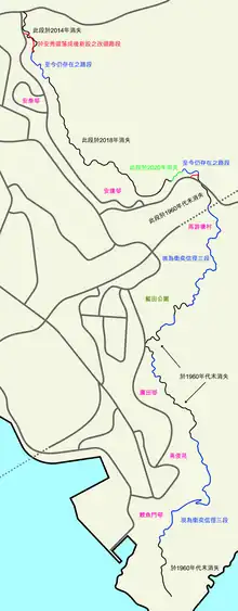 The original road was longer than at present. After reaching Lau Tong, present-day Ma Yau Tong, it ran south to western slope of Black Hill and Hai Wan (present-day Chiu Keng Wan Shan). It further went south to near the top of Devil's Peak and ended near Sam Ka Tsun (present-day Sam Ka Tsuen). This road section later partly overlapped with the Stage 3 of Wilson Trail, and part of the final section to Sam Ka Tsuen is now an access road to the Junk Bay Chinese Permanent Cemetery.
