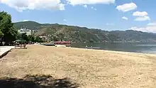 Pogradec (Albanian pronunciation: [pɔɡɾaˈdɛt͡s], Macedonian: Поградец) is the eleventh most populous city in Albania and the capital of the eponymous municipality. It is located on a narrow plain between two mountain chains along the southwestern banks of the Lake of Ohrid. Its climate is profoundly influenced by a seasonal Mediterranean and Continental climate. The total population is 61,530, of which 20,848 in the municipal unit (the pre-2015 municipality) Pogradec (2011 census).[2]