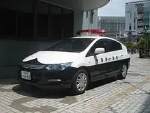 Police Vehicles in Japan are vehicles used by the prefectural police officers used for patrolling consisting of wide variety of vehicles depending on the environment and situation.[1] Most police vehicles in Japan are manufactured by domestic automakers such as Toyota, Nissan or Subaru. Unlike how some departments in the U.S. and Canada allows their officers to take-home their police vehicles, Japan does not allow the officers to take home any kind of law enforcement vehicle. Every marked police patrol vehicles are in black-and-white two tone livery, motorcycles are usually all white. Vehicles for riot police units are painted blue and white, and especially vehicles for the Rescue Squads of the TMPD are painted green and white. The formal name is "警邏車" (keirasha),[2] but in general the abbreviation "パトカー (Hepburn: patokā)" is widely used.[2]