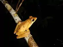 Polypedates pseudocruciger (common names: false hour-glass tree frog or yellow tree frog) is a species of frog in the family Rhacophoridae endemic to the southern Western Ghats, India.[2] It is a common and widespread frog. It is an arboreal edge habitat species generally associated with the understorey of tropical, moist evergreen forest. It breeds in small temporary ponds. Eggs are laid on a leaf over the pond.[1]
