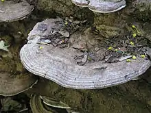 Molecular research, based on cladistic analysis of DNA sequences, has resurrected and redefined the Polyporales (also known as the polyporoid clade).[11][12][13] Studies using a combination of rRNA gene sequences, single-copy protein-coding genes, [14][15] and genome-based phylogenetic analyses have shown that the Polyporales are a monophyletic group.[13][16][10] They are a member of the class Agaricomycetes, but have not been assigned to a subclass.[17] Though the precise boundaries of the order and its constituent families are yet to be resolved, it retains the core group of polypores in the family Polyporaceae, with additional species in the Fomitopsidaceae and Meripilaceae. It also includes polypores in the Ganodermataceae, which were previously assigned to their own separate order, the Ganodermatales, based on their distinctive basidiospore morphology. Corticioid fungi belonging to the Cystostereaceae, Meruliaceae, Phanerochaetaceae, and Xenasmataceae are also included, as are the cauliflower fungi in the Sparassidaceae.[18]