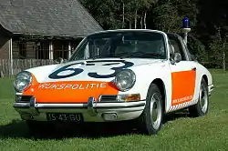 The 912 was also made in a special version for the German autobahn police (Polizei) and for the Dutch police (Rijkspolitie); the 100,000th Porsche car was a 912 Targa for the police of Baden-Württemberg, the home state of Porsche.[8] In the April 1967 edition, the Porsche factory's Christophorus Magazine noted: "On 21 December 1966, Porsche celebrated a particularly proud anniversary. The 100,000th Porsche, a 912 Targa outfitted for the police, was delivered." Porsche executives decided that after the 1969 model year, continuation of 912 production would not be viable, due to both internal and external factors. First, production facilities used for the 912 were reallocated to a new 914–6, a six-cylinder high performance version of the Porsche 914, Porsche-Volkswagen joint effort vehicle. Second, the 911 platform had returned to Porsche's traditional three performance-level ladder, including a base model 911T, a fuel-injected 911E, and a most powerful 911S, with pricing largely in line with market expectations. Third, more stringent United States engine emission control regulations also had a bearing on the decision; Ferry Porsche stated "It would have taken some trouble to prepare the 912 for the new exhaust rules, and with the arrival of the 914 we would have had three different engines to keep current. That was too many."[3]