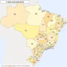 The digits have the same function since 1970: to locate a region, state, county, district, neighborhood or street. Brazil was divided into ten postal areas, ranging from 0 to 9, counting counter-clockwise from the state of São Paulo.
