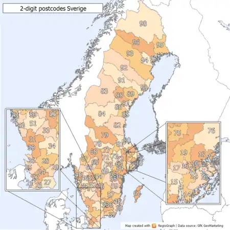 - ↑ Postnummersystemet i Sverige, Post- och telestyrelsen. (Swedish)