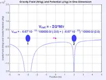 For example, gravity is a conservative force. The associated potential is the gravitational potential, often denoted by or , corresponding to the energy per unit mass as a function of position. The gravitational potential energy of two particles of mass M and m separated by a distance r is
