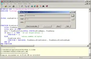 PBCC is a 32-bit compiler for the Windows 9x series and Windows NT series of operating systems, including Windows XP, Windows Server 2008, Windows Vista, and Windows 7. PBCC applications can use dynamic-link libraries (DLLs). The compiler comes with an IDE including an editor and stepping debugger.
