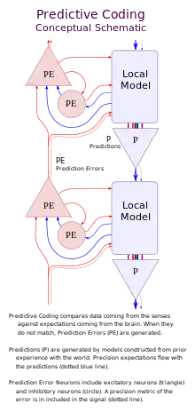 In neuroscience, predictive coding (also known as predictive processing) is a theory of brain function which postulates that the brain is constantly generating and updating a "mental model" of the environment. According to the theory, such a mental model is used to predict input signals from the senses that are then compared with the actual input signals from those senses.[1] With the rising popularity of representation learning, the theory is being actively pursued and applied in machine learning and related fields.[2][3]