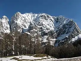Prisojnik or Prisank is a mountain of the Julian Alps in Slovenia. Its summit is 2,547m above sea level. It is located above the Vršič Pass, from where most climbs of the mountain start.[3]