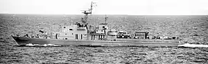 Transferred to Indonesia, 1994 as KRI Pulau Raibu (728), later renamed KRI Kala Hitam (828)