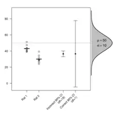 Pseudoreplication due to correlation of samples: without accounting for correlation the 90% confidence interval for the sample mean is much too small. To get around this problem for example the blocking method can be applied where correlated samples are first grouped, then the (for each block) the corresponding sample means are computed. From these two "block sample means" the total sample mean is computed as their average as well as the standard deviation. This gives a better estimate for the confidence interval of the sample mean.[5]