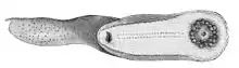 Psychropotes longicauda is a species of sea cucumber in the family Psychropotidae. It inhabits the deep sea where the adult is found on the seabed. The larva is pelagic and has an appendage shaped like a sail on its back which may enable it to move through the water.[2]