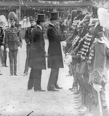 Soldiers of the Public Force of Minas Gerais being inspected by Gustavo Capanema before embarking on a train to the front during the Constitutionalist Revolution of 1932