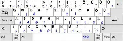 The Serbo-Croatian Latin and Slovene keyboard layout has five additional special characters Č, Ć, Ž, Š and Đ. This keyboard layout was standardized in the 1980s in Yugoslavia. Characters Ć and Đ are only part of Gaj's Latin alphabet but not part of the Slovene alphabet, nevertheless they remain in Slovenian keyboards (for economic reasons, for historical reasons and for writing words in the closely related South Slavic languages). The Ž is on the right side of the Ć key on keyboards which have a longer backspace key, and the usual inverted L-shaped Enter key. The layout makes heavy use of the AltGr (right Alt) key for non-alphabetic characters and dead key combinations for adding diacritics to Latin characters. It is possible to type German, Hungarian, Italian and Polish using only the Serbo-Croatian keyboard layout.
