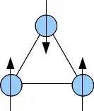 The quantum spin liquid state was first proposed by physicist Phil Anderson in 1973 as the ground state for a system of spins on a triangular lattice that interact antiferromagnetically with their nearest neighbors, i.e. neighboring spins seek to be aligned in opposite directions.[2] Quantum spin liquids generated further interest when in 1987 Anderson proposed a theory that described high-temperature superconductivity in terms of a disordered spin-liquid state.[3][4]
