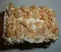 Germany | A yeast cake with a topping of caramelized almonds and filled with cream. |