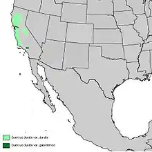 Natural range of Quercus durata
