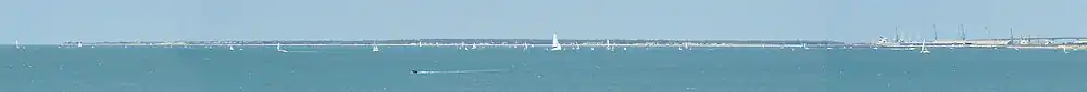 Île de Ré (French pronunciation: [il də ʁe]; variously spelled Rhé or Rhéa; Poitevin: ile de Rét; English: Isle of Ré, /reɪ/ RAY) is an island off the Atlantic coast of France near La Rochelle, Charente-Maritime, on the northern side of the Pertuis d'Antioche strait. Its highest point has an elevation of 20 metres (66 feet). It is 30 kilometres (19 miles) long and five kilometres (3 miles) wide. The 2.9 km (1.8 mi) Île de Ré bridge, completed in 1988, connects it to La Rochelle on the mainland.