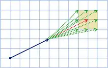 - On each turn after that, the player can choose to move the same number of squares in the same direction as on the previous turn; the grid point reached by this move is called the principal point for this turn. (E.g., if the previous move was four squares to the right and two squares upwards, then the principal point is found by moving another four squares to the right and two more squares upwards.) However, the player also has the choice of any of the eight neighbours of this principal point.