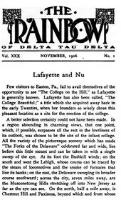 - Rainbow's official publication, The Rainbow, became the official publication of Delta Tau Delta, replacing the latter fraternity's The Crescent.[10]