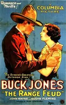 The Range Feud is a 1931 American Pre-Code Western film directed by D. Ross Lederman for Columbia Pictures, that stars Buck Jones and John Wayne. Wayne biographer Ronald L. Davis referred to the film as the first in a collection of "cheap, assembly-line pictures" Wayne would make in the 1930s.[1] It was remade in 1934 as a 15-chapter Buck Jones serial called The Red Rider (without Wayne).[2][3]