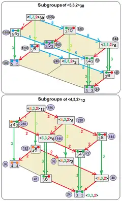 Subgroups from <5,3,2>30, <4,3,2>12 and <3,3,2>6