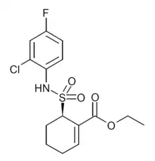 Resatorvid (TAK-242) is a cyclohexane derivative that was invented by scientists at Takeda in a drug discovery campaign to identify inhibitors of the receptor TLR4.[1] It binds directly to cysteine residue 747[1] intracellularly, preventing TLR4 binding with TIRAP and thus preventing downstream signal transduction.[2]