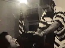 On June 24, 1994, Rossi's wife, Sherrie Lynn, was found near death in a coma on the side of a Pennsylvania road. She had a crushed skull and was left covered in blood; her injuries were so severe that she needed to wear a helmet.[18][35][36][37] Her rescuers thought she had been in a traffic accident, and called for an ambulance.[38] Ninety minutes later, at 8:05 pm, Richard Rossi called police, and claimed that men killed his wife and shot at him twice.[38] But when police came to interview him, his story changed, first claiming that a man that looked like him got into the passenger side of the car, then that the man who looked like him attacked from the driver's side.[38] Rossi had a cellular phone available, but said he pursued the assailant instead of dialing for help because he was a "good runner."[38] Rossi also changed his story on where the assailants approached from, first saying they were in a white car, then that they "came out of the woods out of nowhere."[38] Police testified that Rossi told them a "satanic cult" was trying to frame him; Rossi denies this.[38][39][40] Rossi was wearing only a pair of tan shorts when police interviewed him; Rossi claimed that he lost his shirt running through the woods, but did not explain why he was barefoot.[38] Several witnesses reported seeing a man with long hair near the Rossi's cars, and State Police reports suggested the presence of two other cars, one blue and one white.[41]