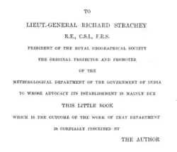 Dedication of 1889 meteorology department book by Henry Francis Blanford